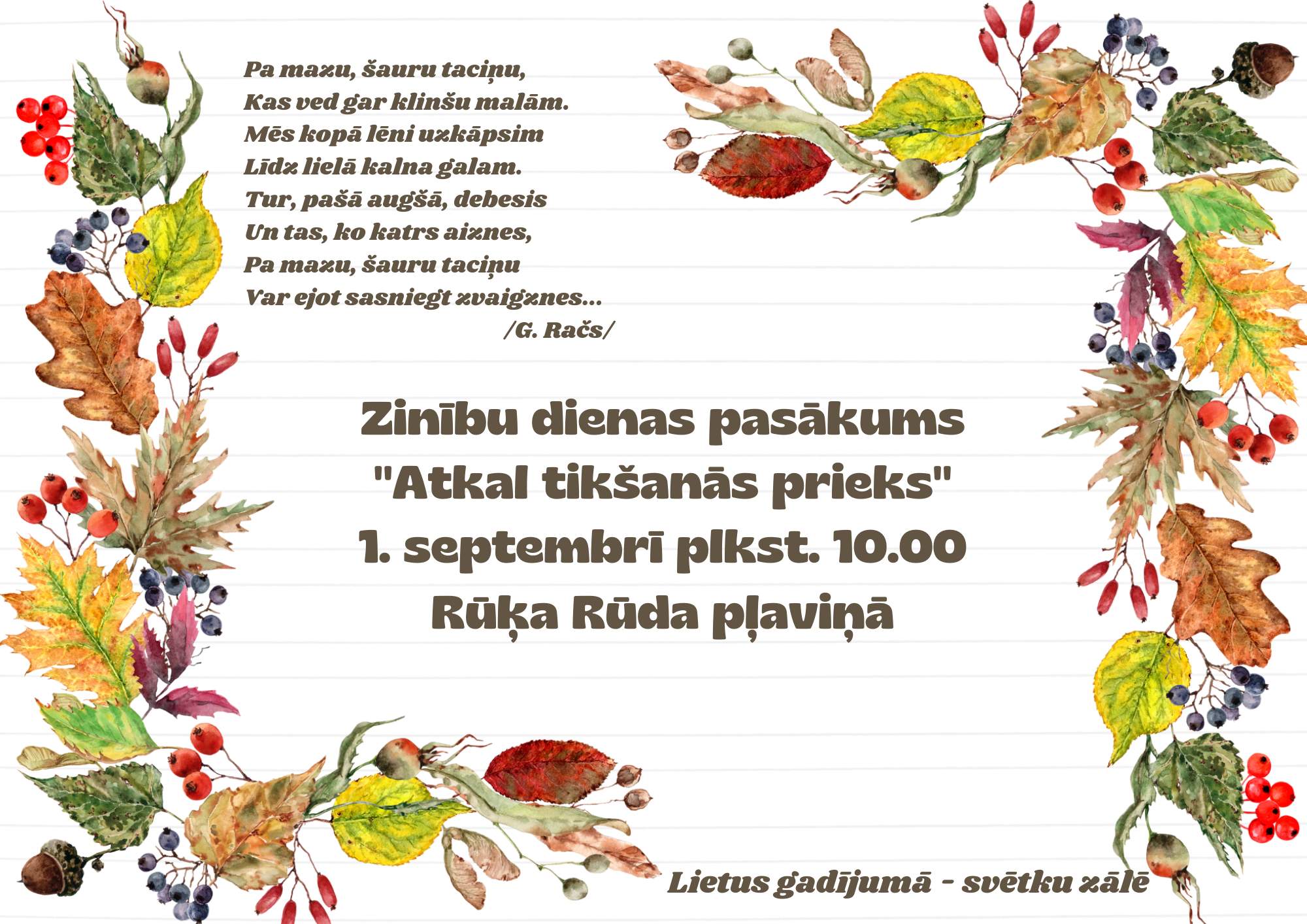 Pirmajā septembrī, Ziņību dienā, kā jau tas mūsu iestādē ierasts, jauno mācību gadu ieskandinājām koši, krāsaini un skanīgi! Svinīgajā svētku brīdī, kad kopā sanācām Rūķa
